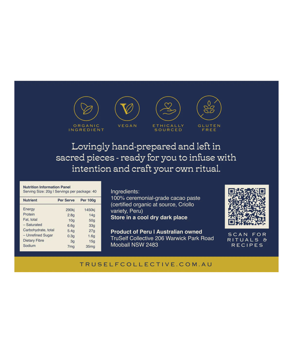 Ethically sourced, organic, and ceremonial-grade cacao from the Peruvian Amazon. A heart-opening plant medicine used to support clarity, emotional resilience, warmth, creativity, and embodied presence.