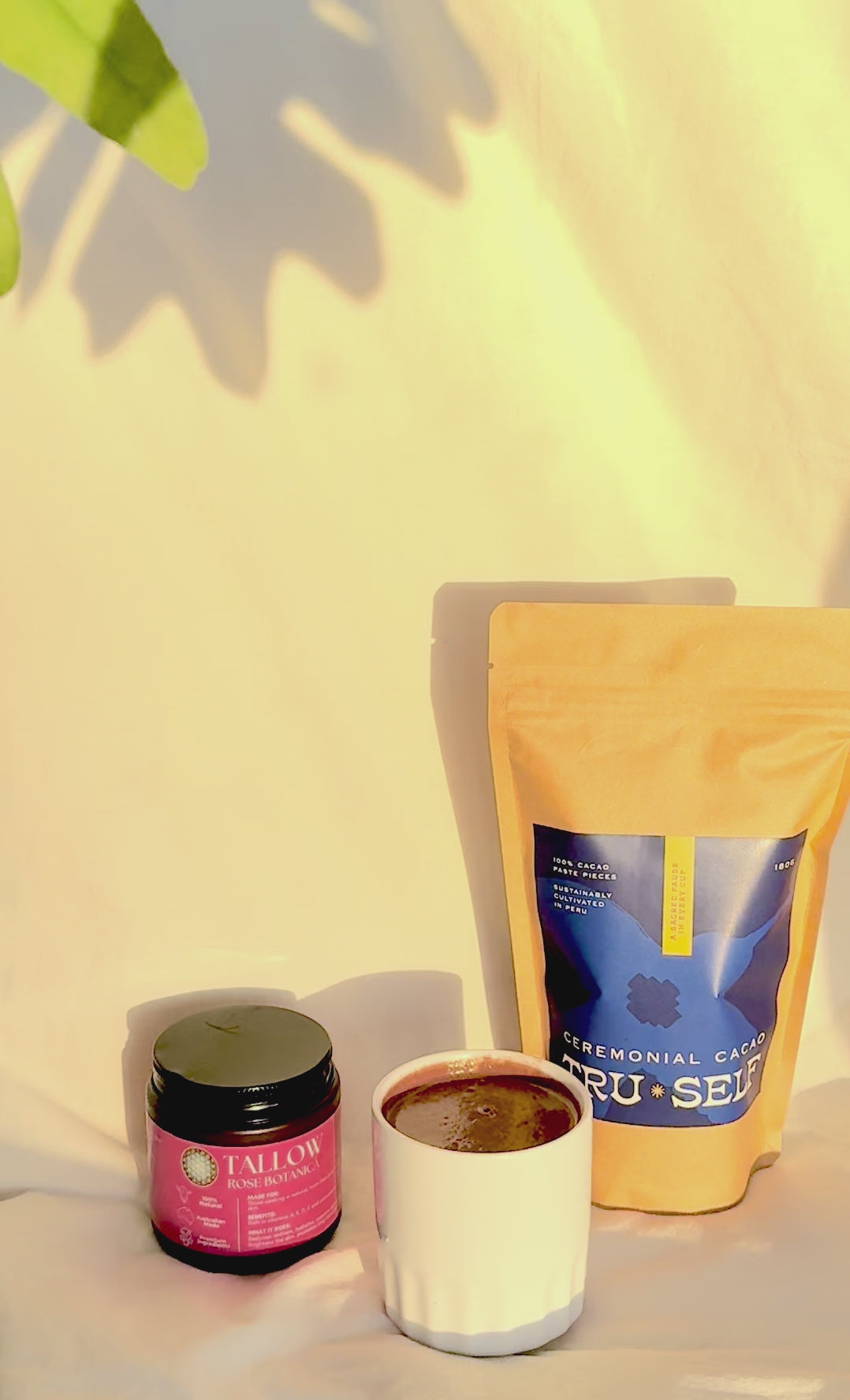 Each element of this bundle works together to calm, hydrate, and rejuvenate the skin while supporting emotional clarity, presence, and self-connection. Using 100% Australian grass-fed & finished tallow, botanical infusions, and ceremonial cacao, this ritual invites you into a deeper, more embodied experience of beauty and nourishment.